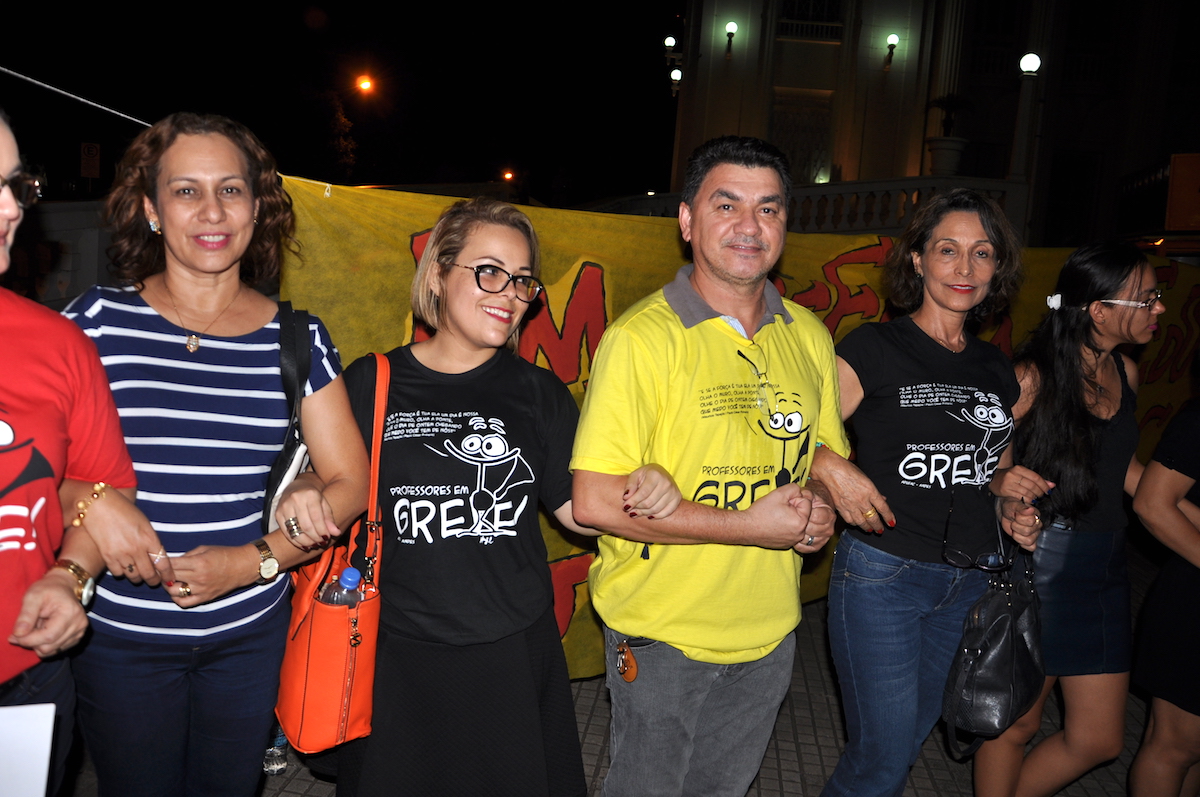 empate8Professores e servidores da Universidade Federal do Acre, da Secretaria de Educação e do Federal de Educação, Ciência e Tecnologia do Acre realizaram na noite desta quinta-feira, em frente ao Palácio Rio Branco, uma manifestação em defesa do ensino público e gratuito. Os manifestantes formaram uma imensa corrente humana durante o que ele denominaram de “empate”, em referência ao líder sindical Chico Mendes (1944-1988), que reunia seringueiros para impedir a derrubada da florestas.