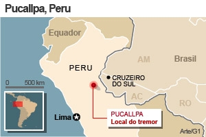 Dois tremores de terra, de magnitude 7,6 na escala Richter, sacudiram, nessa terça-feira (24), o Leste do Peru, perto da fronteira com o Brasil. Não há registro de vítimas ou danos.