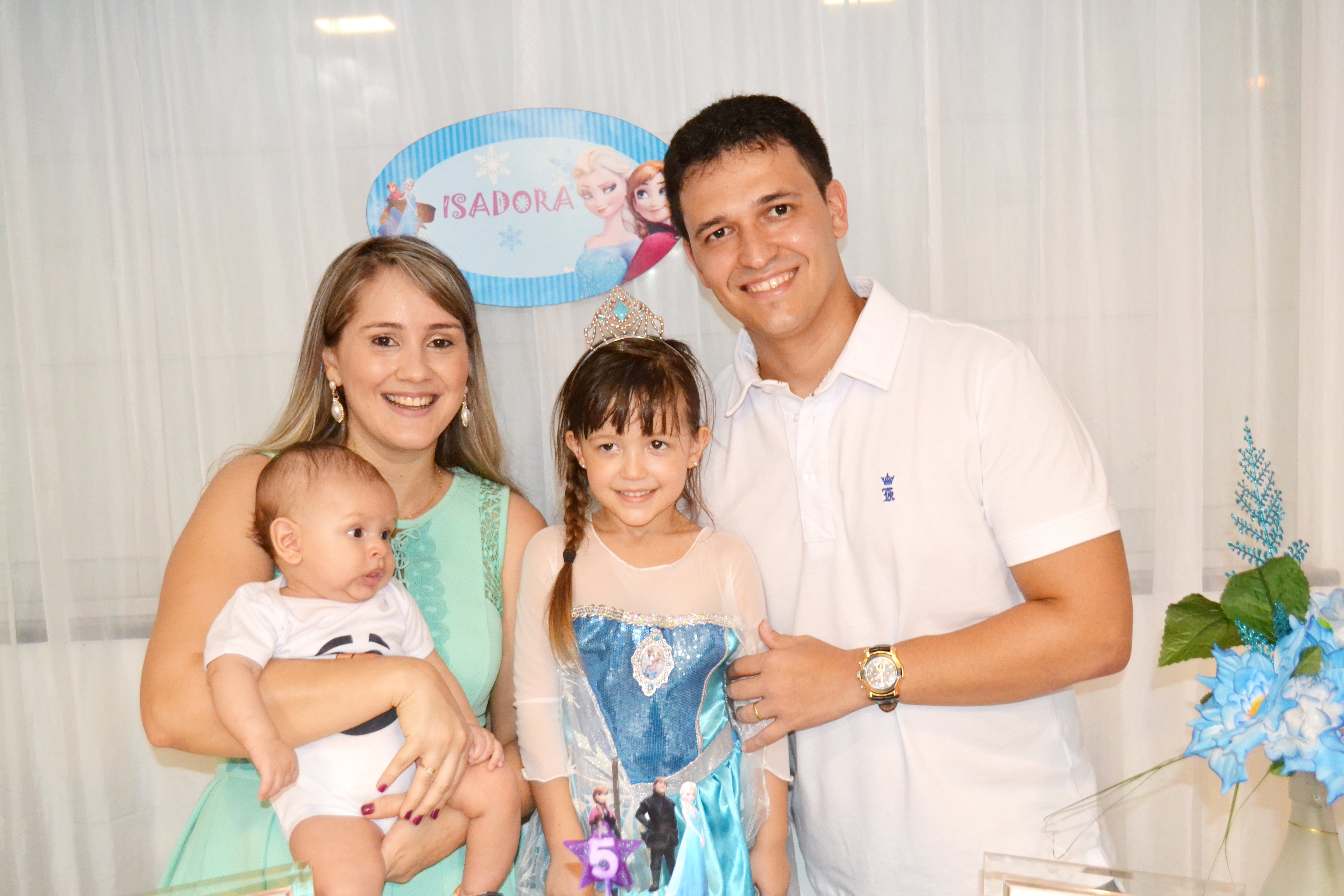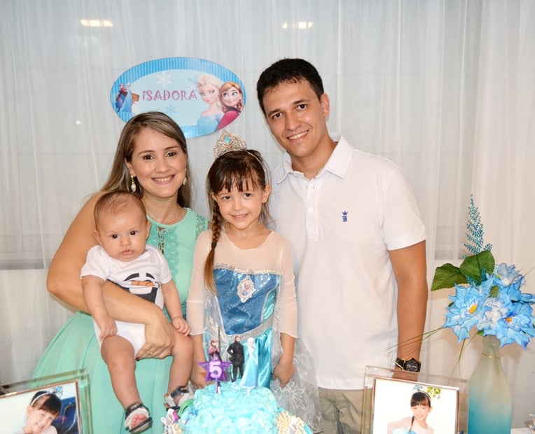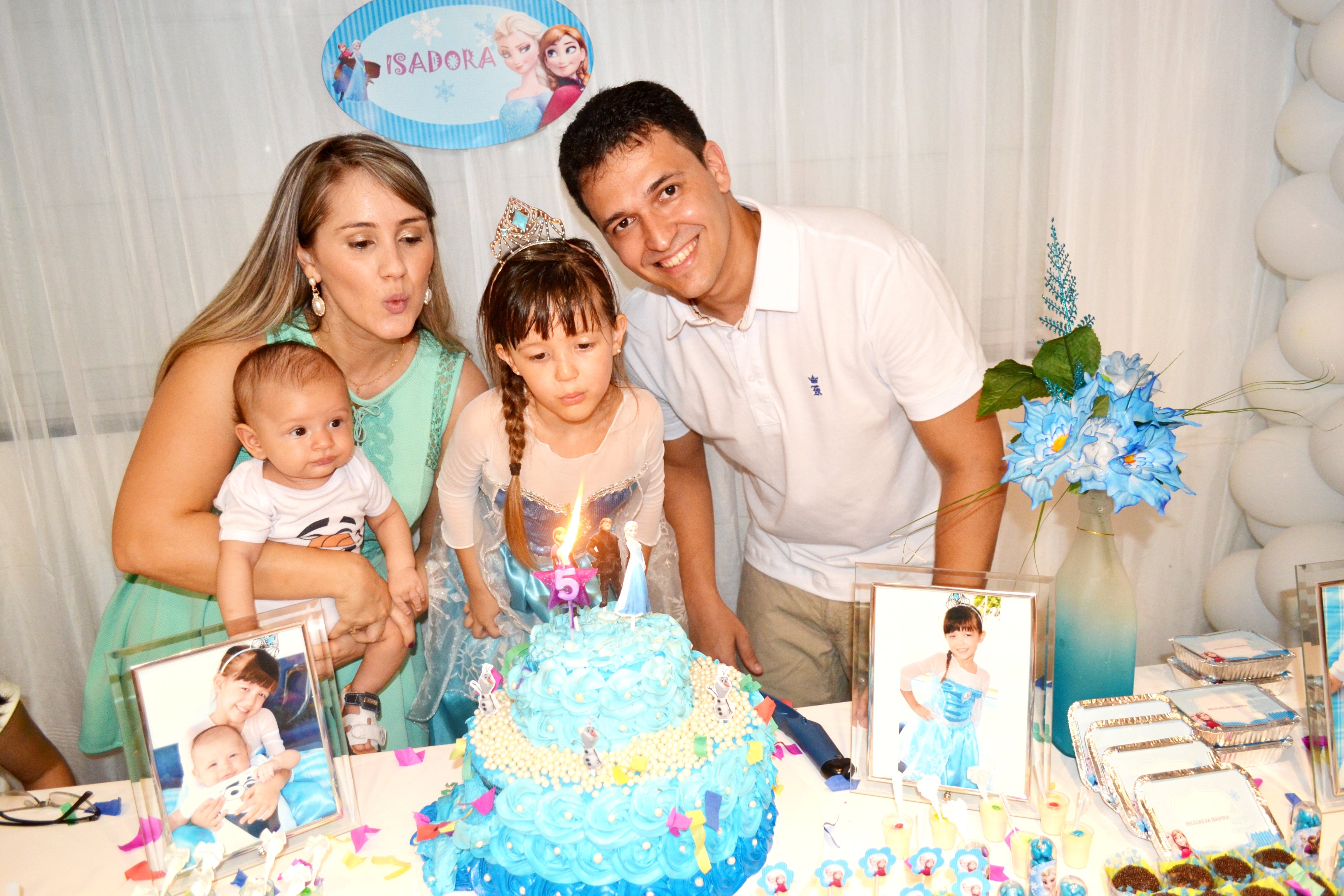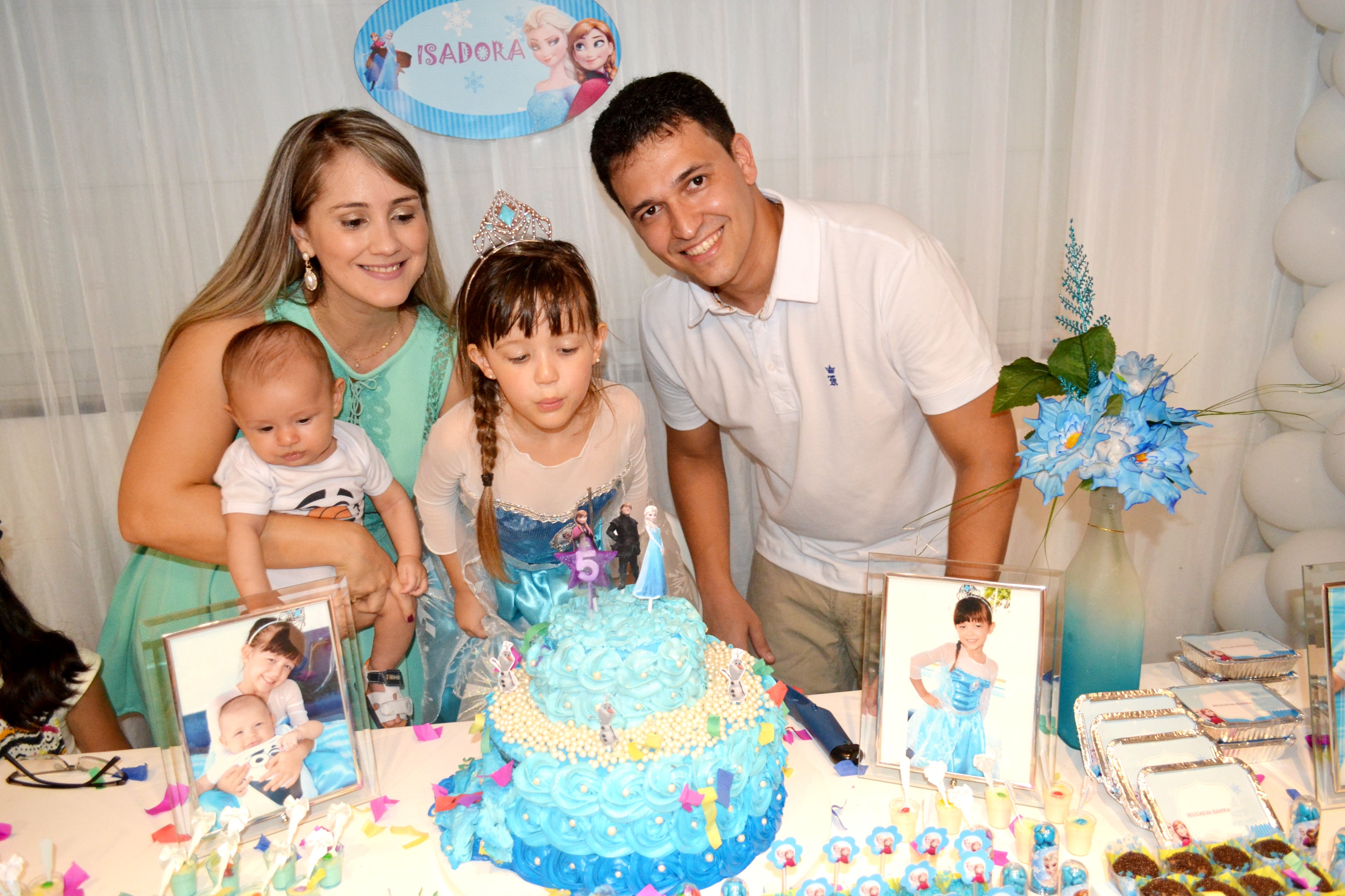 A princesa Isadora Pinheiro Martins comemorou mais um aniversário recebendo o carinho da família e amiguinhos, que estivera em sua residência neste sábado (14) para cantar os parabéns pelos seus 5 aninhos de vida.  A personagem Elsa conhecida como a Rainha do Gelo, dos estúdios Walt Disney Pictures, Frozen, foi tema da decoração da festa.