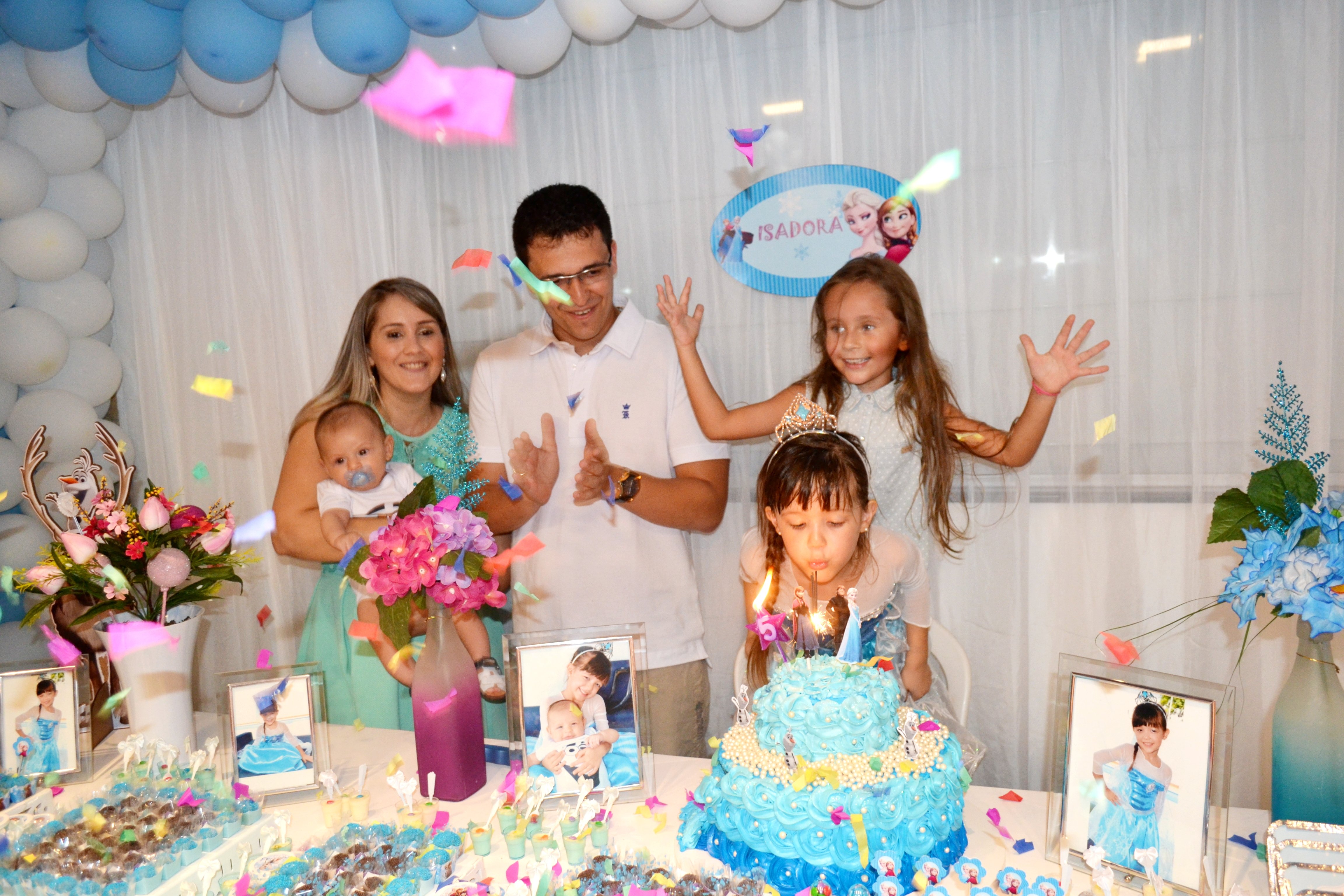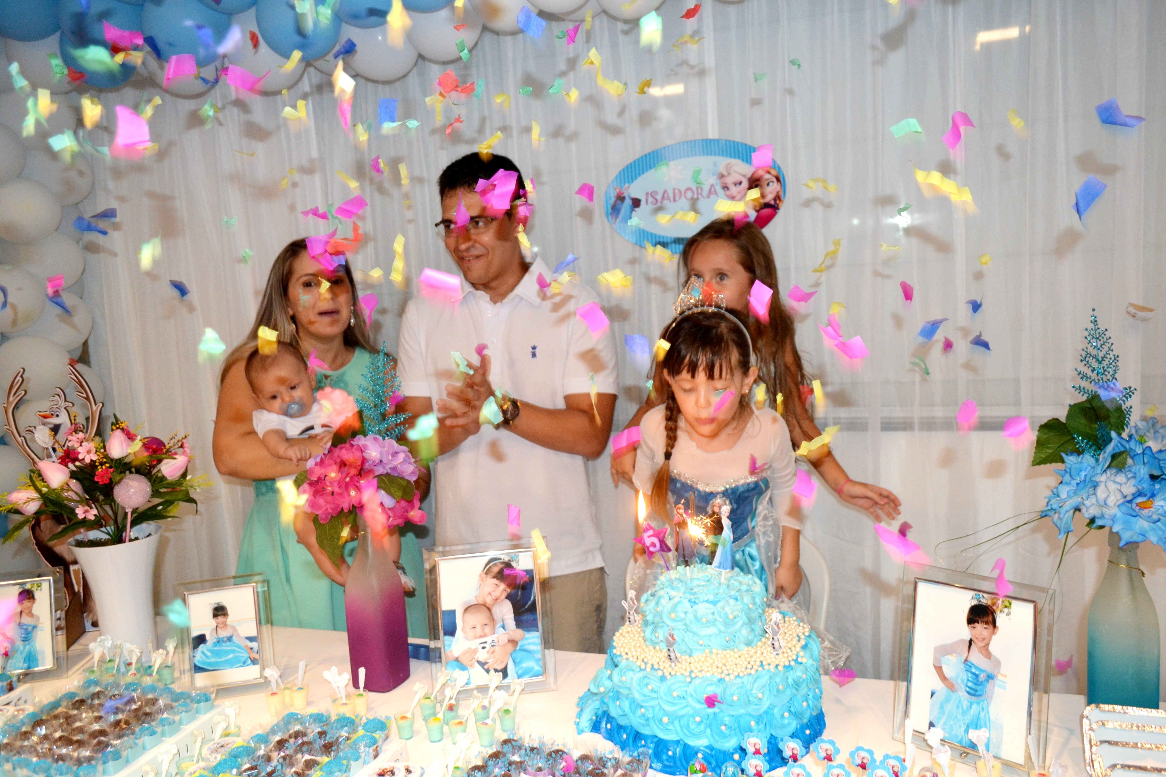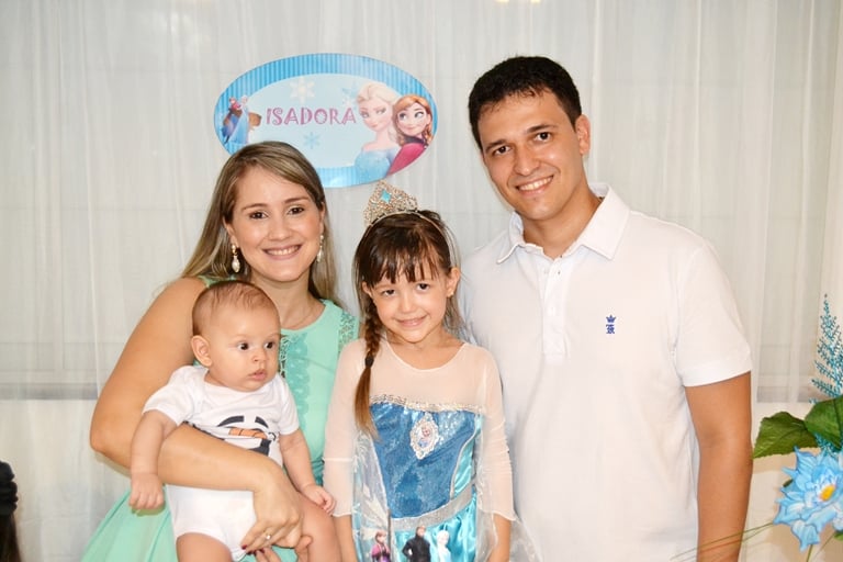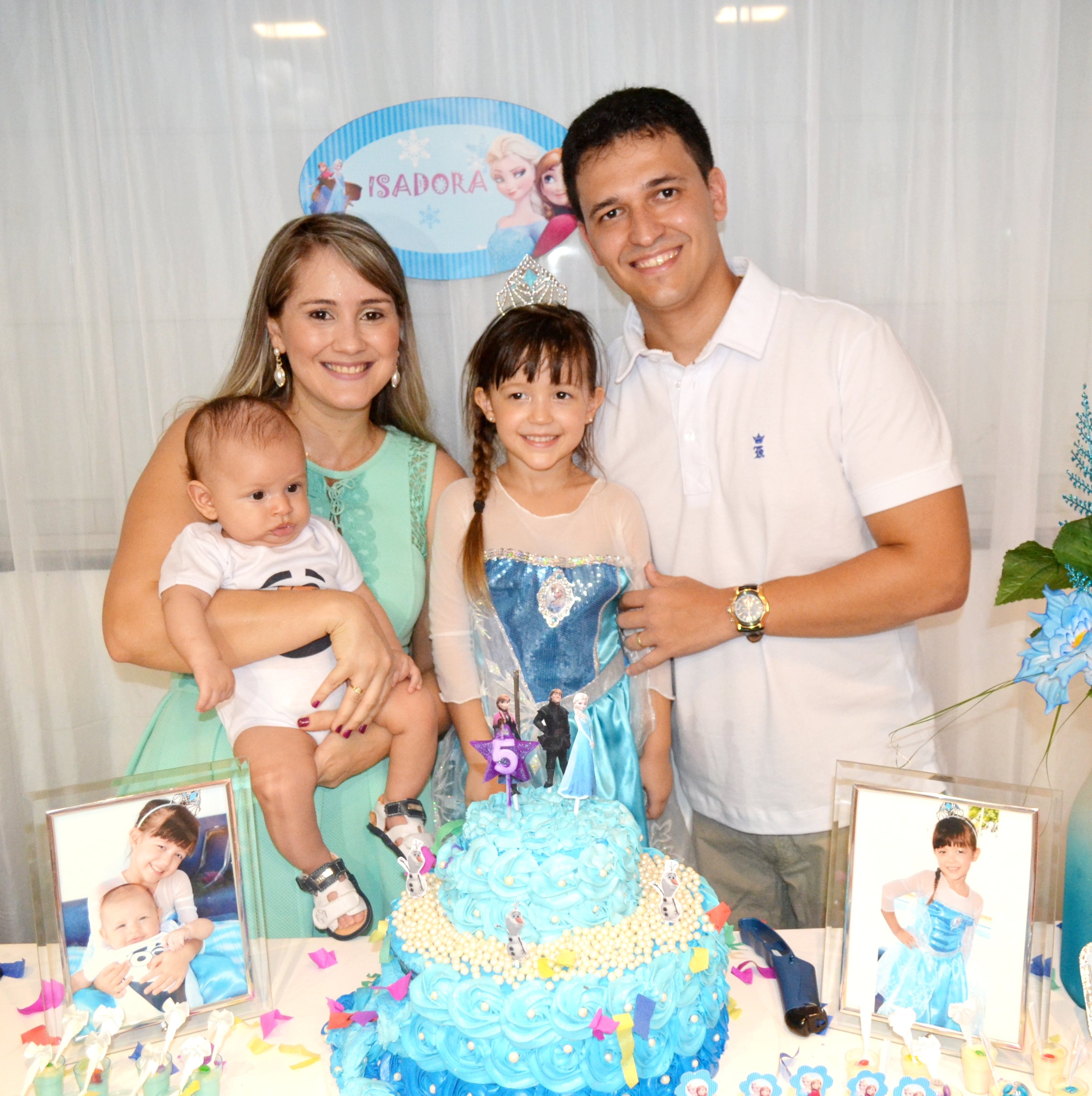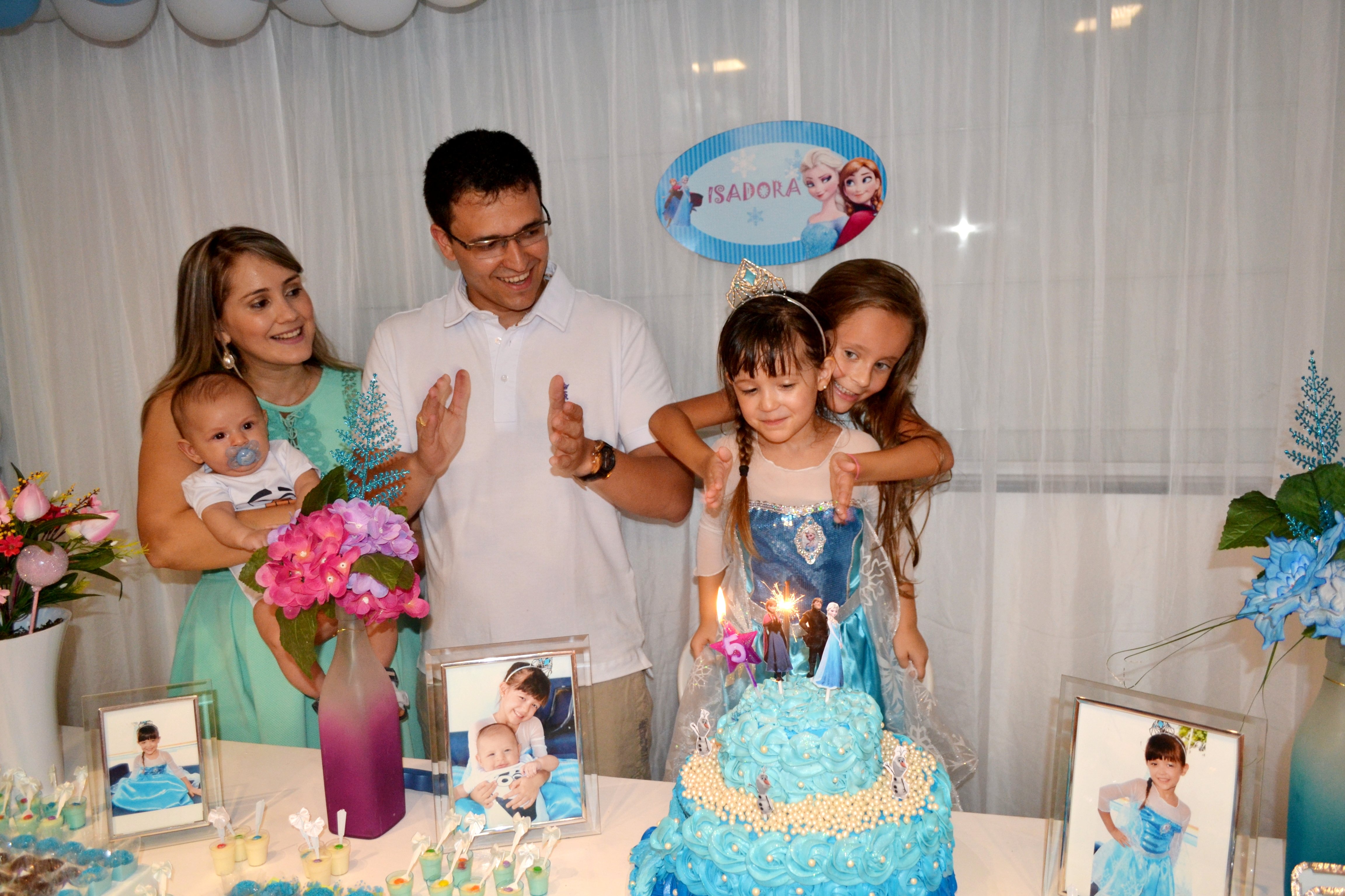 A princesa Isadora Pinheiro Martins comemorou mais um aniversário recebendo o carinho da família e amiguinhos, que estivera em sua residência neste sábado (14) para cantar os parabéns pelos seus 5 aninhos de vida.  A personagem Elsa conhecida como a Rainha do Gelo, dos estúdios Walt Disney Pictures, Frozen, foi tema da decoração da festa.