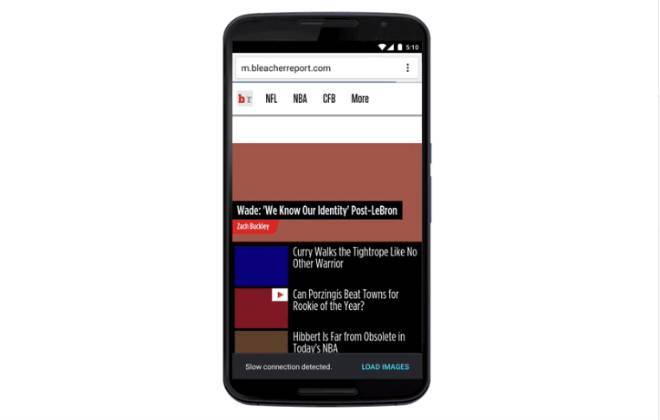 Sempre que o Chrome for usado a partir de uma rede móvel, o navegador vai detectar a velocidade da conexão e substituir as imagens de uma página da web por blocos coloridos, economizando em 70% o consumo de dados do aparelho. Basta tocar em “carregar imagens” para desabilitar a função.