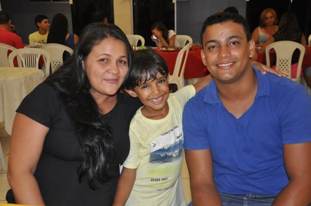 Em café da manhã especial na terrinha, a jornalista Wânia Pinheiro na companhia do casal Edgardina e Jairo Cassiano. O clique dos amigos foi feito na residência do casal acompanho do pequeno João Mattos.