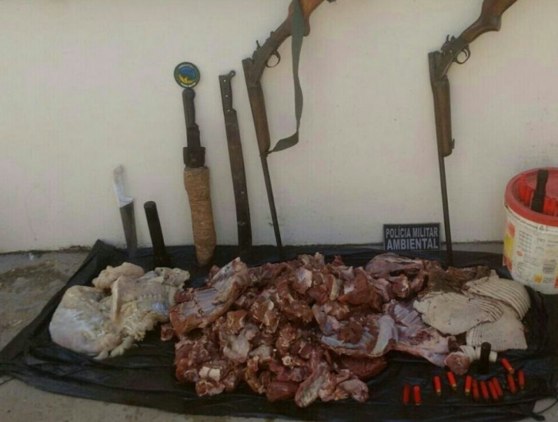 De acordo com os militares, após abordagem de rotina em uma caminhonete no km 46 da estrada de Brasileia, foi encontrado no interior de um veículo: carne de caça, duas espingardas e vários cartuchos; a polícia suspeita que o armamento foi usado para a matança dos animais.