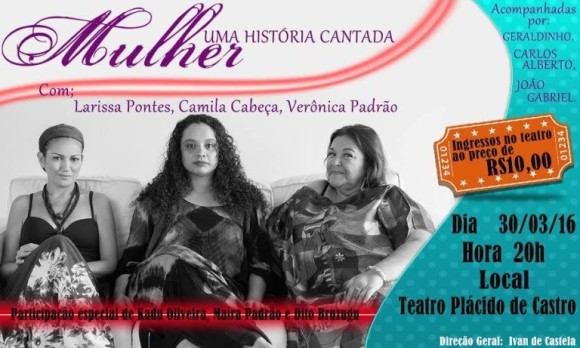 Inspirado no Livro “Mulher Brasileira uma História Cantada”, publicado pelo Conselho Nacional da Mulher (1997), o show objetiva homenagear o mês da Mulher por meio de canções de compositores e compositoras brasileiras, interpretadas pelas cantoras Verônica Padrão, Camila Cabeça e Larissa Pontes. O show será companhado dos músicos Geraldinho (Violões e guitarras), Carlos Alberto Benjamin (Contrabaixo) e João Gabriel (Percusão), com participações especiais de Maíra Padrão, Kadu Oliveira e Dito Bruzugu. A direção Geral é de Ivan de Castela.
