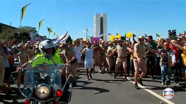 Geral Grupos contra e a favor do impeachment protestam durante revezamento da tocha