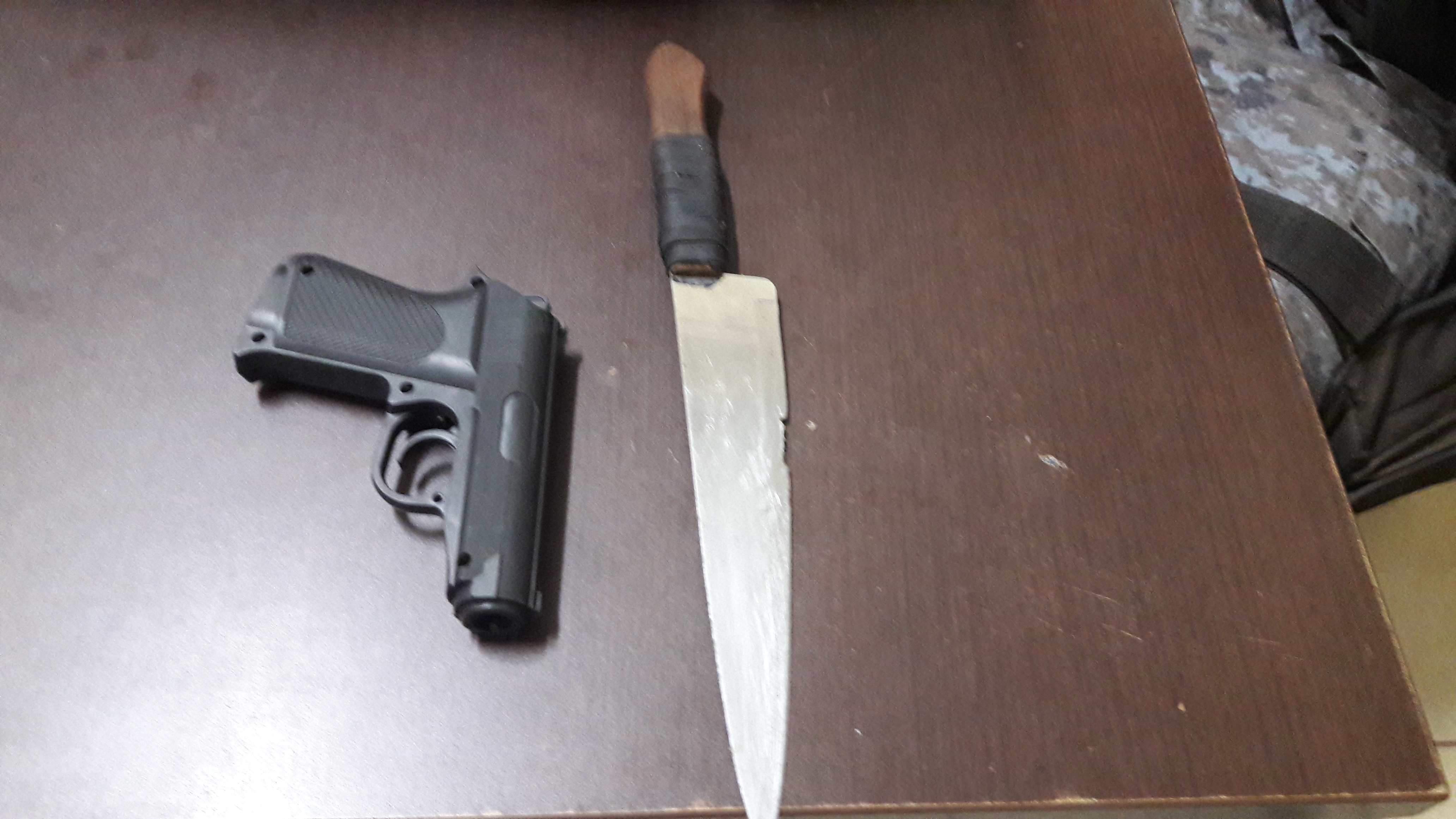 Policiais do 5° Batalhão, em patrulhamento de rotina, avistaram um homem em atitude suspeita, ao abordá-lo, foi encontrado um facão e um simulacro “revólver de brinquedo”. Segundo o sargento Menezes, o homem estava sob efeito de entorpecentes.