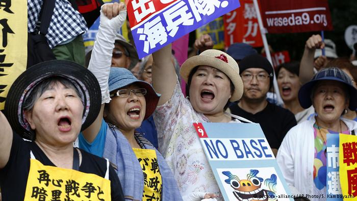 Em torno de 65 mil manifestantes participaram do evento popular em Naha, capital da província, levando cartazes e gritando “A nossa raiva chegou ao limite!” e “Fora Marinha! [dos EUA]”. Os protestos ocorrem na cidade logo depois do homicídio de uma jovem, cujo suspeito é um funcionário da base militar norte-americana.