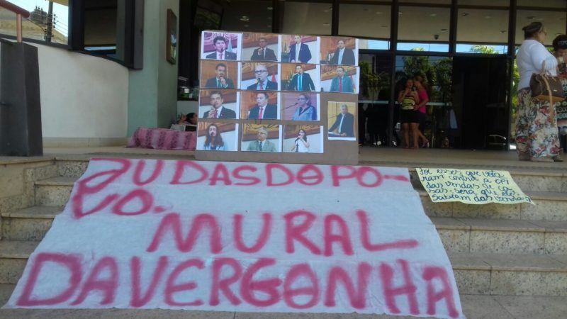 Na manhã de quinta-feira (23), um mural com fotos de 15 deputados, que supostamente votaram contra a instalação da CPI de venda das casas populares, foi exposto na hall de entrada da Aleac. Junto a isso, ainda foram expostos uma faixa com os dizeres “Judas do Povo: Mural da Vergonha”, e um cartaz questionando se os deputados, por acaso saberiam do esquema de venda de casas.