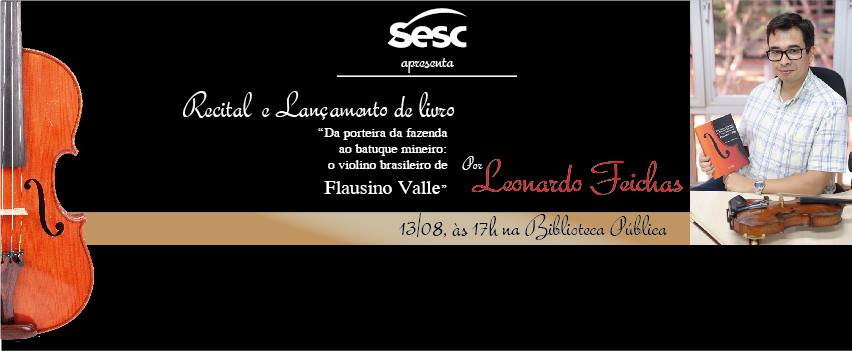 O Serviço Social do Comércio – Sesc no Acre realiza o recital e lançamento do livro “Da porteira da fazenda ao batuque mineiro: o violino brasileiro de Flausino Valle”, com o violinista e escritor Leonardo Feichas. O evento será no dia 13 de agosto, às 17h, na Biblioteca Pública. A entrada é franca.
