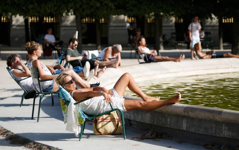 Pessoas tomam sol no jardim do Palais Royal em Paris, nesta terça-feria (13); 2016 pode ser o ano mais quente da história, segundo agência da ONU (Foto: Reuters/Charles Platiau)