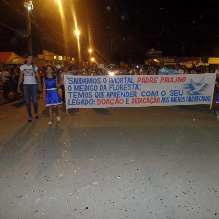 As escolas homenagearam o padre Paolino Baldassari, apresentando na avenida a contribuição do religioso para com a cidade de Sena Madureira: realização das “desobrigas” nos rios, implantação de escolas na zona rural, consultas e entrega de medicamentos, realização do arraial, dentre outros. “Em comum acordo com as escolas, decidimos prestar mais essa homenagem. O padre Paolino deixou um grande legado para toda a nossa população e merece esse reconhecimento”, comentou a secretária de Educação, Francisca Andrade.