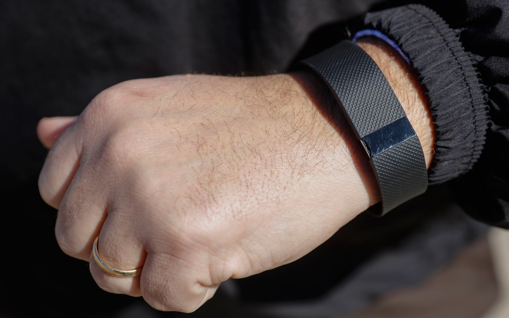 Homem usa seu Fitbit, pulseira que monitora atividades físicas  (Foto: AP Photo/AJ Mast/File)