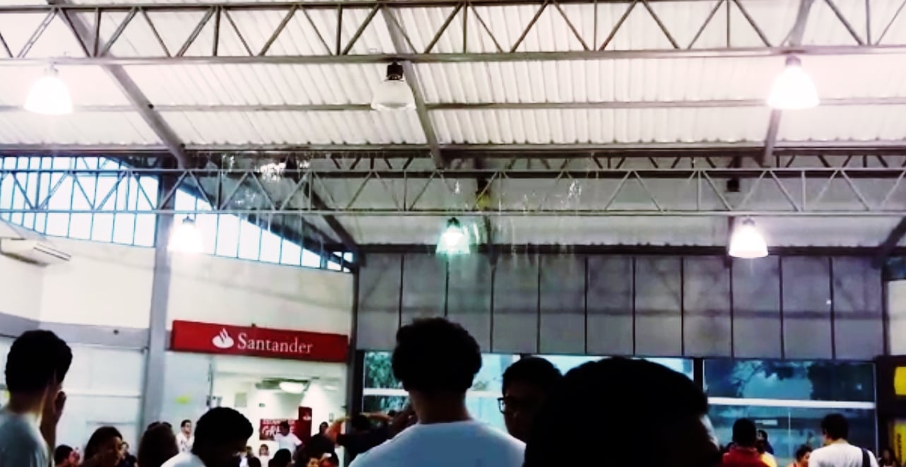 Na Universidade Federal do Acre (Ufac), o restaurante universitário (R.U) do campus Rio Branco ficou completamente alagado. De acordo com as imagens enviadas por estudantes que utilizavam o espaço no momento da forte chuva, a água descia de forma torrencial pelo telhado impedindo que os universitários pudessem fazer as refeições.