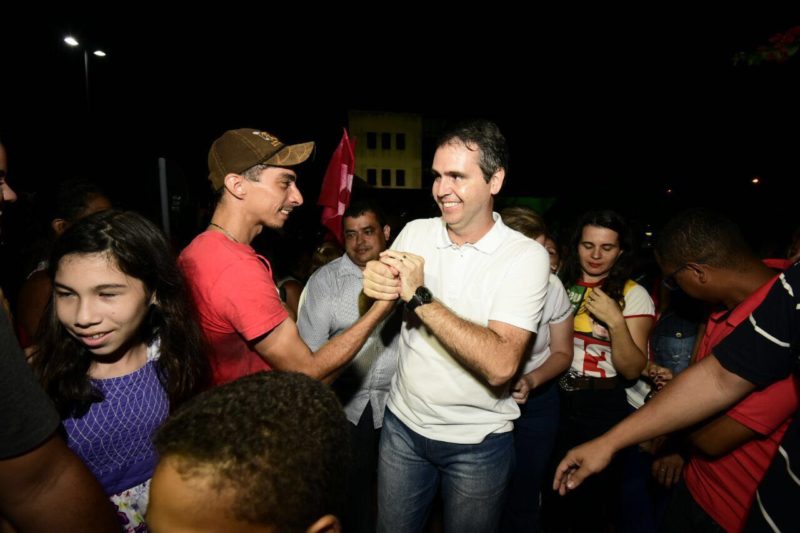 Ao chegar no local acompanhado de lideranças da Frente Popular, Marcus Alexandre tirou fotos, abraçou, interagiu bastante com a população e foi recebido com aplausos e entusiasmo da população, que cantava o jingle de campanha e balançavam a bandeira do 13.