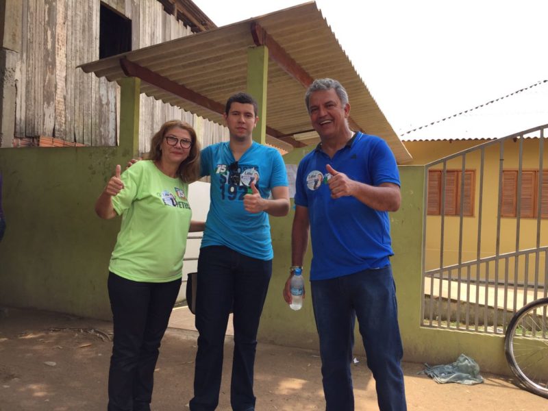 O senador Sérgio Petecão votou na escola Maria Angélica por voltas das 10 horas da manhã, acompanhado do filho Serginho e de sua irmã Lene Petecão.