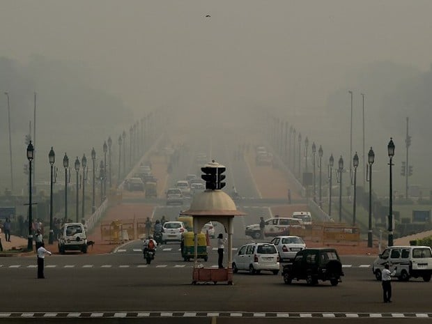 Nova Delhi, na Índia, amanheceu nesta segunda-feira (31) com espessa camada de poluição (Foto: Money Sharma / AFP)