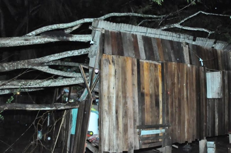 Por volta das 20 horas desta quarta-feira (9), durante forte chuva em Rio Branco, na Rua José Araújo Caio, bairro Chico Mendes, uma árvore muito grande caiu em cima da casa, destruindo parte da residência e deixando toda uma família machucada.