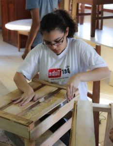 Um dos sócios da Hortalise, Gabriel Santos, de apenas 15 anos, explica que os caixotes são a matéria-prima principal para a construção da horta, as peças são lixadas e preparadas e com muita habilidade e se tornam “vasos” de diferentes modelos que vão comportar as hortaliças: “Primeiro tentamos reciclar ao máximo para fazermos o produto, Pegamos o caixote por doação dos mercados, depois pegamos banners que já foram utilizados. As mudas e sementes que usamos também vêm de doação”.