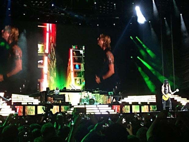 Antes de “Patience” abrir o bis, Duff e Fortus aos violões e Slash na guitarra tocaram um trecho de “Angie”, dos Rolling Stones. O público vibrou logo nos primeiros acordes e ofuscou o assobio da introdução.