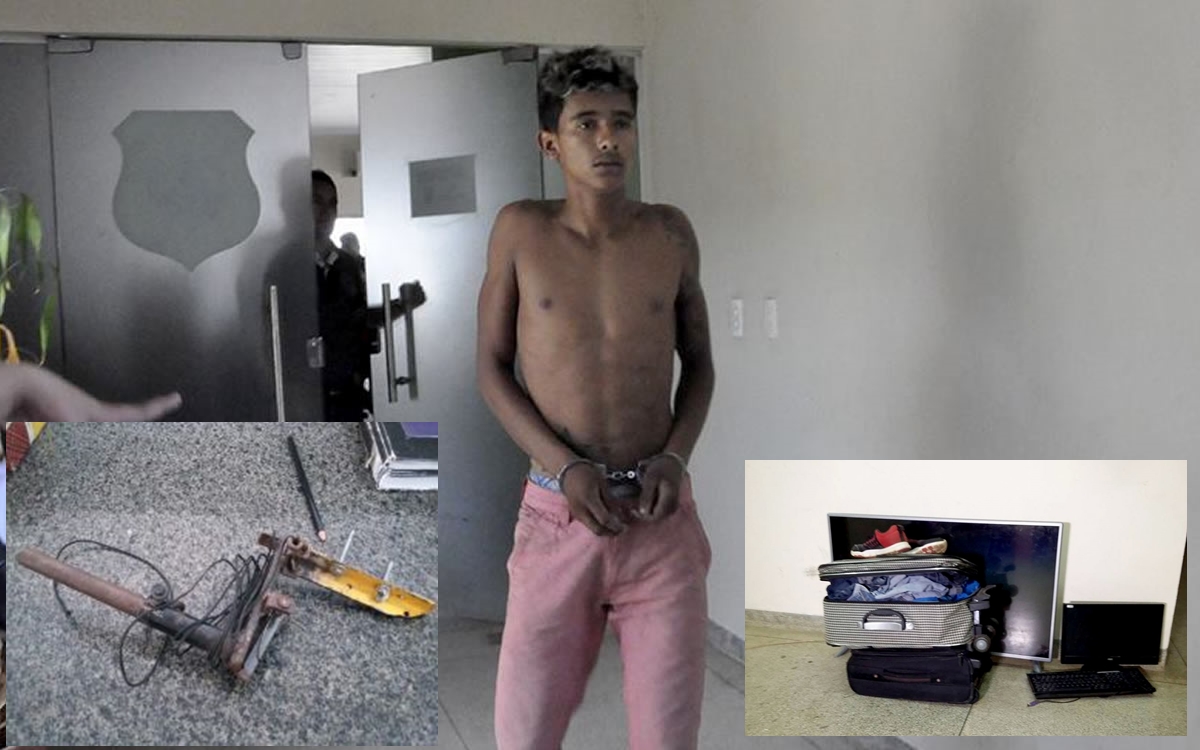 Bruno Nascimento da Silva, de 18 anos, foi preso em falgrante na noite do domingo (20), após arrombar e furtar uma residência localizada no bairro do Miritizal, em Cruzeiro do Sul de onde levou diversos objetos como roupas, sapatos, um televisor de Led de 42 polegadas, notebook, computador de mesa e um tablete. O prejuízo foi de aproximadamente R$ 8 mil.