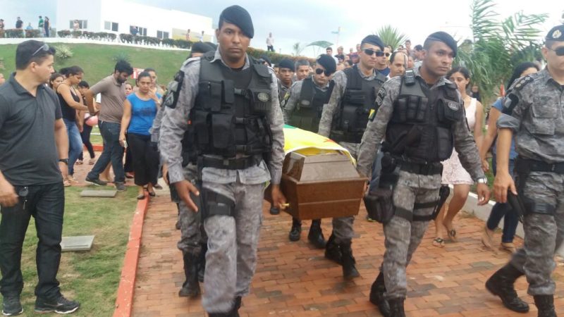 Com muita comoção e sentimento de revolta, familiares e amigos prestam as últimas homenagens no enterro do sargento Paulo Maia de Andrade, 44 anos, no cemitério Morada da Paz, em Rio Branco. O militar recebeu todas honrarias e homenagens da corporação.
