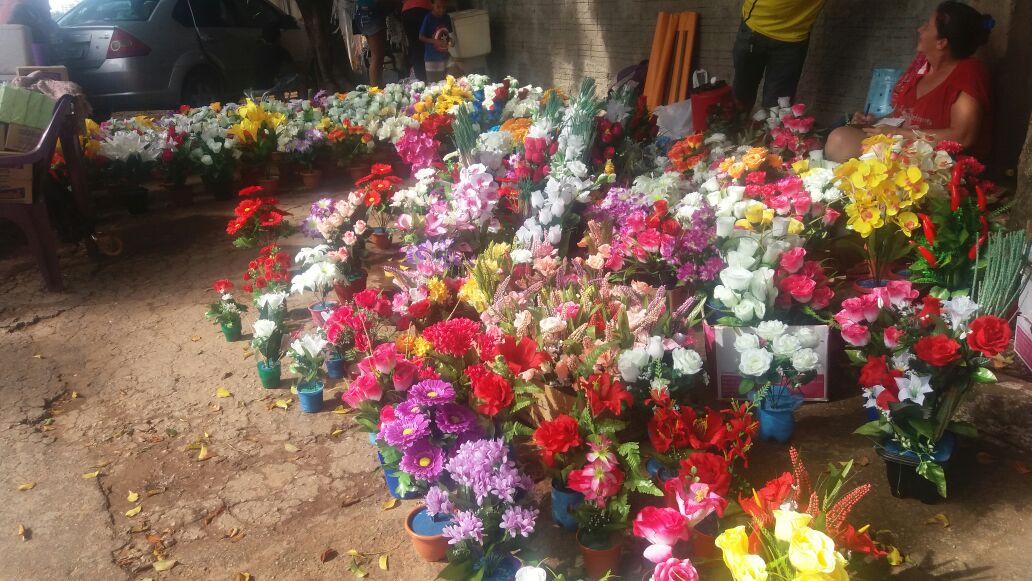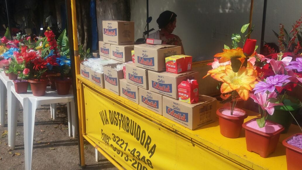 Dona Maria de Oliveira, há mais de 20 anos aproveita a oportunidade junto ao marido que faz alguns ‘bicos’ como pedreiro, para vender água, refrigerante e vários modelos de arranjos de flores na frente do cemitério. Para driblar a crise econômica, dona Maria investiu em um curso para confecção de flores feitas de EVA para fazer arranjos diferentes para vender.