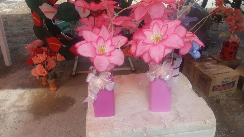 “Todos os anos é a mesma coisa, todos vendem flores e arranjos comuns, como eu estou desempregada, aproveitei para fazer esse curso e graças a ele, hoje o diferencial aqui no meu comércio são os arranjos e coroas de flores feitas de EVA, além disso eu aproveitei várias caixas de leite e cobri com folhas de EVA, decorei e transformei em lindos jarros de flores”, disse a ambulante.