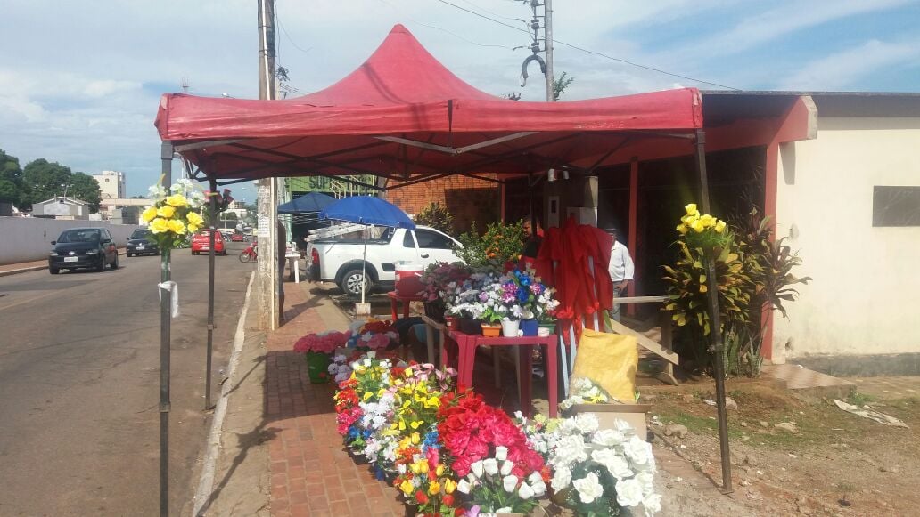 A movimentação é bem intensa do do lado de fora do Cemitério São João Batista nesta quarta-feira (2). Várias tendas foram montadas com os produtos que serão vendidos neste feriado do Dia de Finados.
