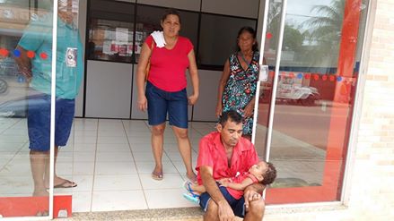 Lídia relatou ainda que o senhor que está na foto sentado no chão do Banco Bradesco com uma criança no colo chegou ao banco às 7 da manhã, esperando o carro forte aparecer com o dinheiro e até às 11h da manhã ninguém apareceu.