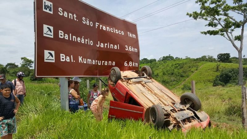 Foi informado que o motorista, juntamente com outros ocupantes, teriam abandonado o local deixando o veículo capotado com as rodas para cima.