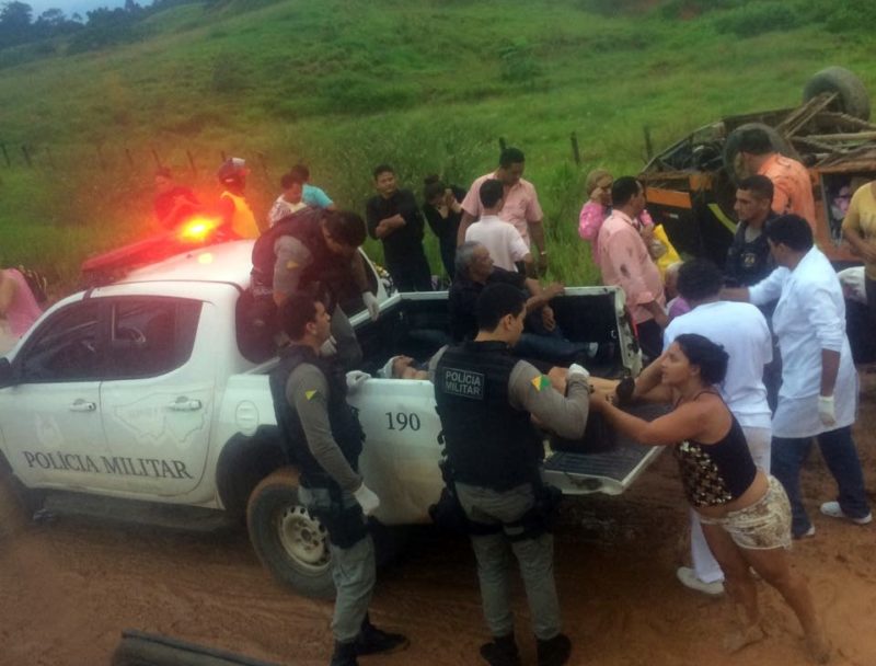 Alguns feridos tiveram que ser trasportados na caminhonete da Polícia Militar/Foto: reprodução