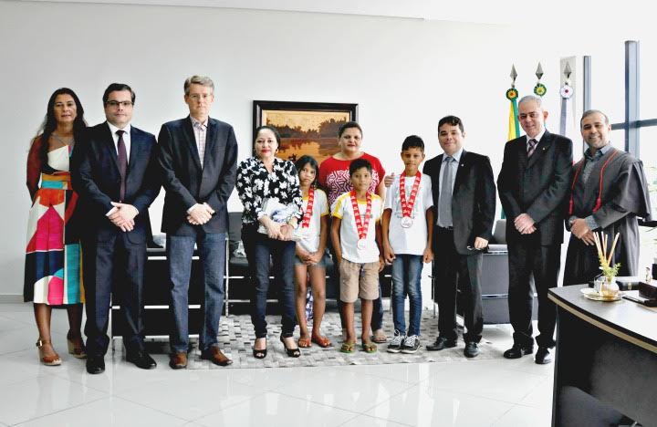 Os três alunos vencedores, acompanhados da diretora da escola e da professora, foram recebidos pelo procurador-geral de Justiça, Oswaldo D’Albuquerque. Também estiveram presentes na cerimônia de premiação o secretário-geral do MPAC, Celso Jerônimo; o procurador-geral adjunto administrativo e institucional, Carlos Maia; os promotores de Justiça Rodrigo Curti e Leandro Portela; e a diretora de Comunicação do MPAC, Socorro Camelo.
