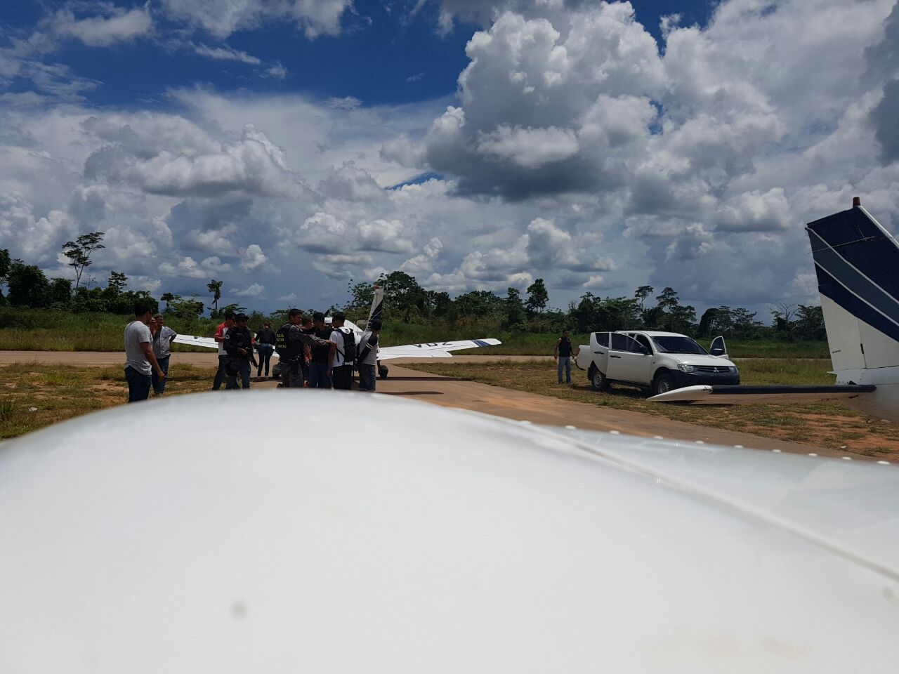 “Pelo o que conseguimos captar dos suspeitos, eles iriam fazer o piloto refém e os dois bolivianos assumiriam a cabine para sair do Brasil e pousar em uma cidade boliviana, junto com eles estavam um manual de instruções de voo e um GPS usado na aviação”, disse um dos policiais.