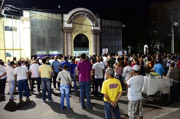 Manifestantes na porta da Câmara após a aprovação do reajuste salarial do Executivo e do Legislativo
