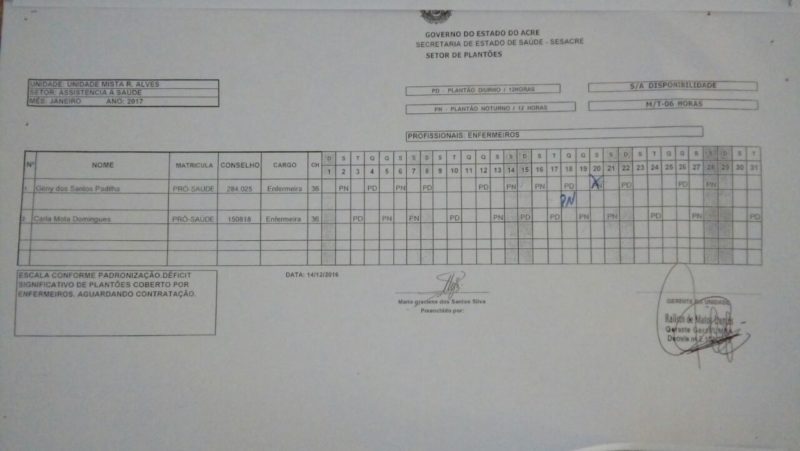 Adailton revelou que a Lei 7498/86 exige a presença do enfermeiro nas unidades de saúde. “Passamos a escala para o jurídico do Sintesac e vamos entrar com uma ação civil pública para obrigar o governo a cumprir a lei e prestar o atendimento necessário para a população”, informou.