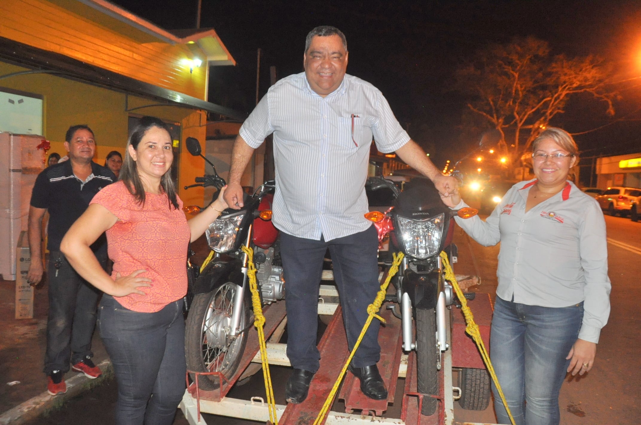 O prefeito Mazinho Serafim (PMDB) e a Associação Comercial de Sena Madureira entregaram na noite desta segunda-feira (2) os prêmios da promoção “Sorteio fim de ano”, que disponibilizou quatro prêmios: duas motos CG Titan 160, uma geladeira duplex e uma TV LED 42 polegadas.