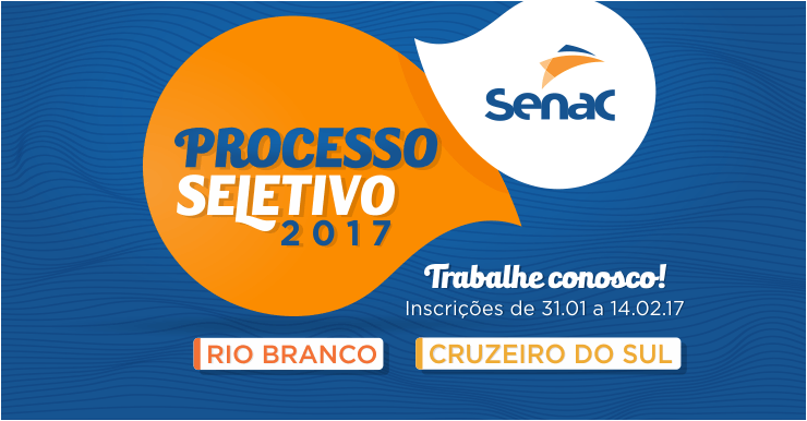 O Serviço Nacional de Aprendizagem Comercial – Departamento Regional no Acre – Senac-DR/AC abriu editais para processos seletivos para Níveis Médio e Superior para provimento de vagas efetivas e formação de cadastros de reserva, para lotação nas unidades de Rio Branco e Cruzeiro do Sul. As inscrições tem início nesta terça-feira (31).