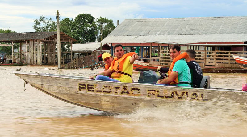 Senador Gladson Cameli acompanha prefeita Marilete nos bairros alagados em Tarauacá