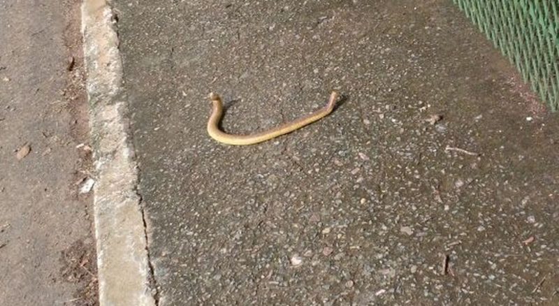 De acordo com os policiais, o réptil é da espécie amphisbaena, também conhecida como “cobra de duas cabeças” ou “cobra-cega”. Ela foi levada para o parque Águas Emendadas, em Planaltina.
