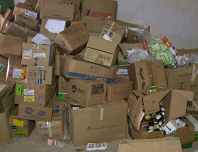 Na outra ponta do depósito foram encontradas dezenas de caixas de remédios com a data de validade vencida./Foto:Reprodução
