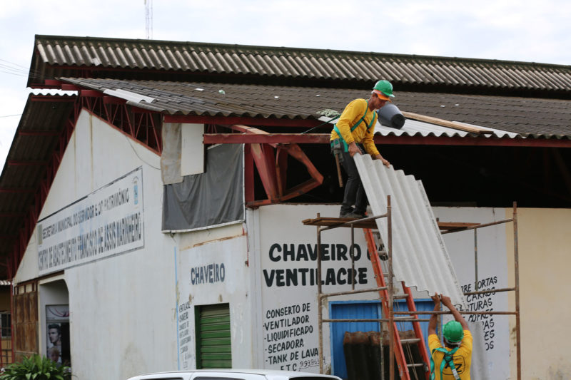 Telhado sendo substituído /Foto: Assessoria