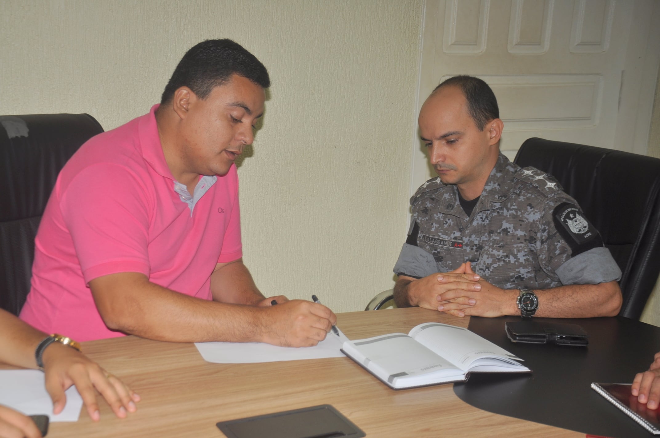 Secretário de Cultura Gilberto Lira programando segurança do Carnaval de Sena juto ao comandante da PM, Michel Casagrande /Foto: Assessoria