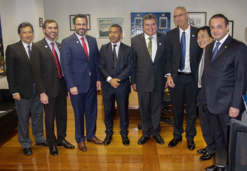 Com o objetivo de estreitar a parceria entre o Brasil e Israel nas questões de recursos hídricos e aproveitamento da água, o deputado federal Alan Rick (PRB) se reuniu na manhã desta quarta-feira (08) com o Ministro do Meio Ambiente (MMA), Sarney Filho, em Brasília. O embaixador de Israel, Yossi Shelley, e o ministro da Embaixada de Israel, Itay Tagner, participaram da agenda juntamente com o parlamentar.
