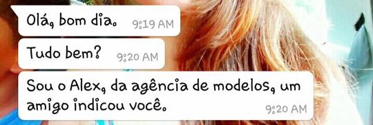 Em contato com a reportagem da ContilNet, Alex alertou que um número de celular desconhecido estaria utilizando sua foto no perfil do WhatsApp e entrando em contato com as jovens, se passando pelo agente de moda.