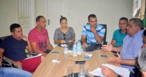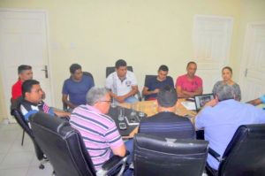 Vice-prefeito Gilberto Lira, o secretário de Educação, Altemir Lira e vereadores participaram da reunião/Foto: Ascom PMSM