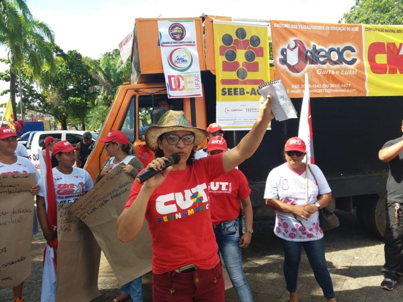 Integrando o movimento de repercussão nacional, o Sindicato dos Trabalhadores em Educação do Acre (Sinteac) realiza nesta sexta-feira (31), em frente ao Palácio Rio Branco, manifestação com servidores da Educação e outros diversos setores.