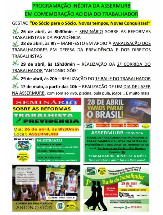 Assermurb prepara série de eventos em comemoração ao Dia do Trabalhador