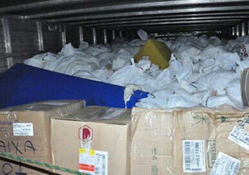 Na revista no interior do caminhão, os policias encontraram lixo hospitalar. O material estava por trás de vários galões de óleo, que também não poderia ser transportado nesse caminhão sem as autorizações legais. Os galões estariam cobrindo o lixo hospitalar, também totalmente irregular. O motorista foi preso e conduzido à Delegacia Central de Flagrantes para restar esclarecimentos.