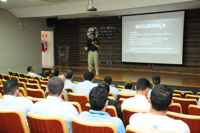 Com o objetivo de alertar e dar dicas de segurança aos empresários, a Federação do Comércio de Bens, Serviços e Turismo do Estado do Acre (Fecomércio/AC) realizou, na manhã desta segunda-feira, 10, a palestra “Segurança e Medidas de Proteção Pessoal”, ministrada pelo coronel da Polícia Militar do Estado do Acre (PM/AC) Ulysses Freitas Pereira de Araújo. O evento foi realizado na sede da instituição, e tinha, como público alvo, empresários, autônomos e autoridades em geral.