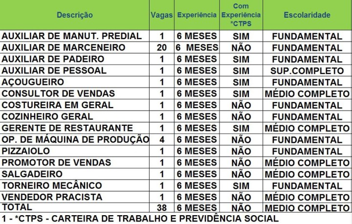 Sistema Nacional de Emprego no Acre (Sine) disponibiliza 38 vagas para diversas áreas nesta segunda-feira (17). Os candidatos interessados devem comparecer pessoalmente à instituição, localizada na Avenida Getúlio Vargas, n°1.670, em Rio Branco.